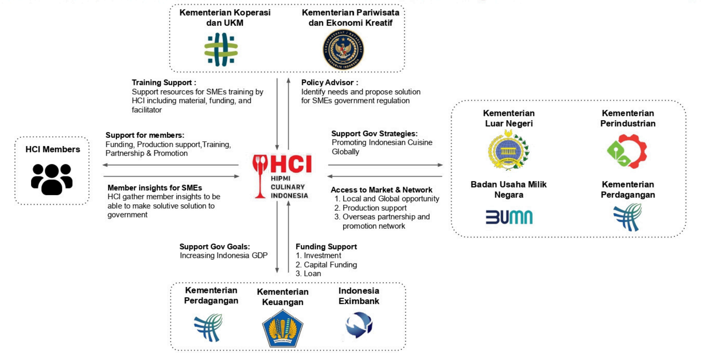 Mendorong dan mempromosikan bisnis kuliner anggota, baik di tingkat nasional maupun internasional.